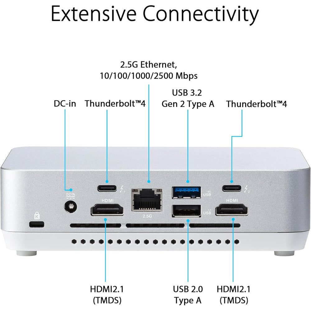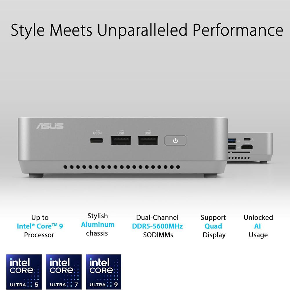 ASUS NUC 14 Pro+ Full System Mini PC with Intel 14th Gen Core Ultra 5 125H, 16GB DDR5 RAM, 512GB PCIe G4x4 NVMe SSD, Thunderbolt 4, Wi-Fi 6E & Bluetooth 5.3, Win 11 Home, Silver Aluminum Chassis, Toolless Chassis Access, VESA Mount included