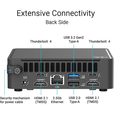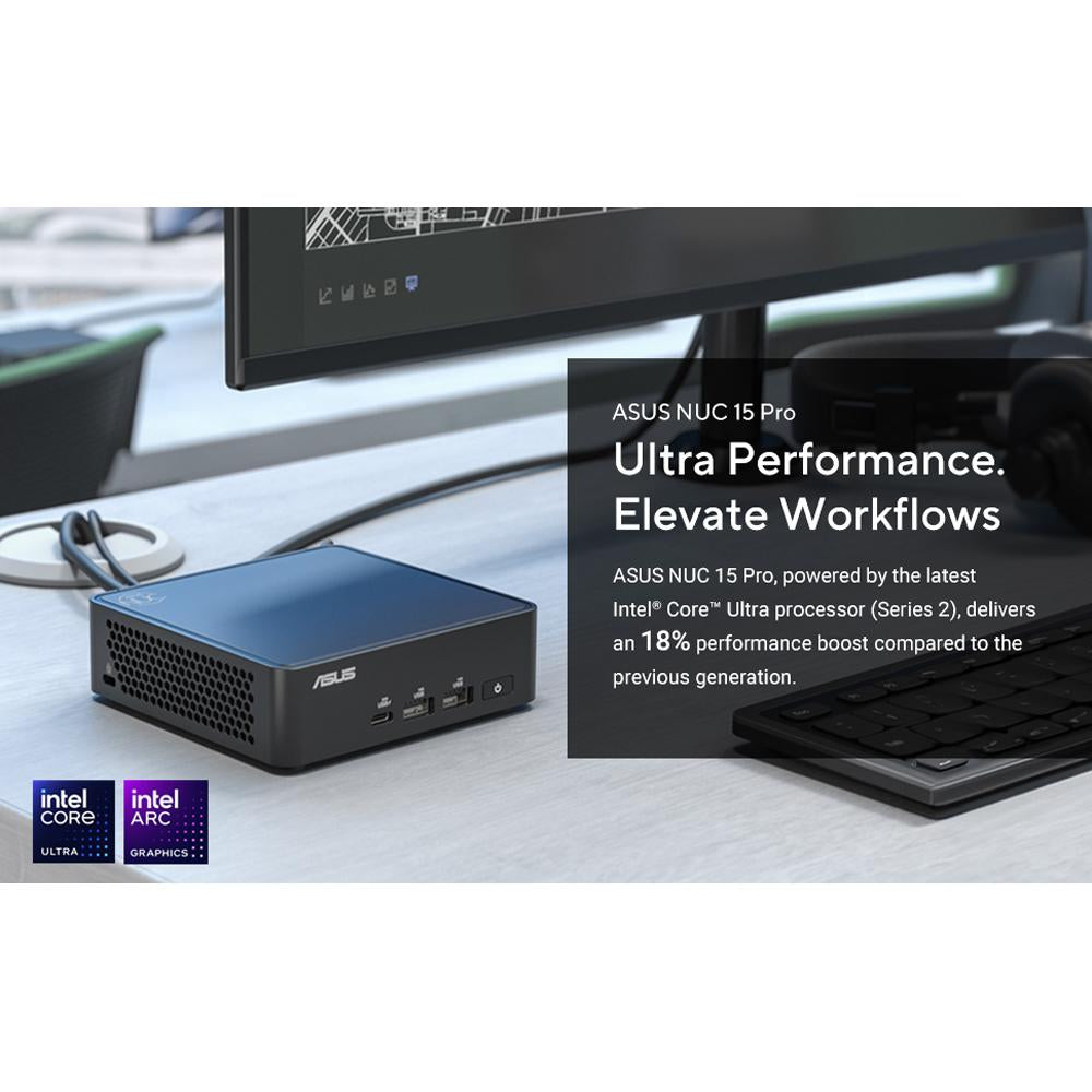 ASUS NUC 15 Pro Slim Barebone Kit Mini PC with Intel Series 2 Core Ultra 5 225H, Dual channel DDR5 RAM, Dual Storage Design, Thunderbolt 4, Wi Fi 7 & Bluetooth 5.4, Toolless Chassis Access, VESA Mount included
