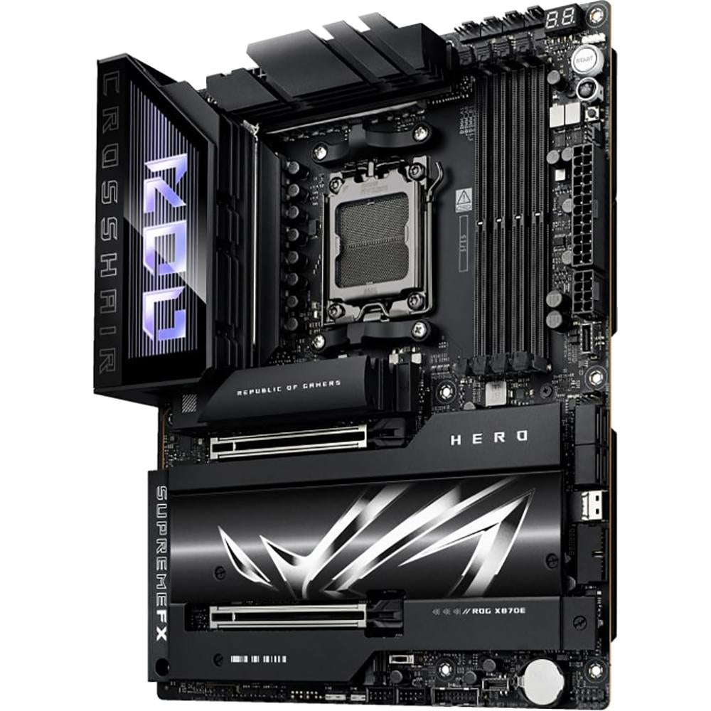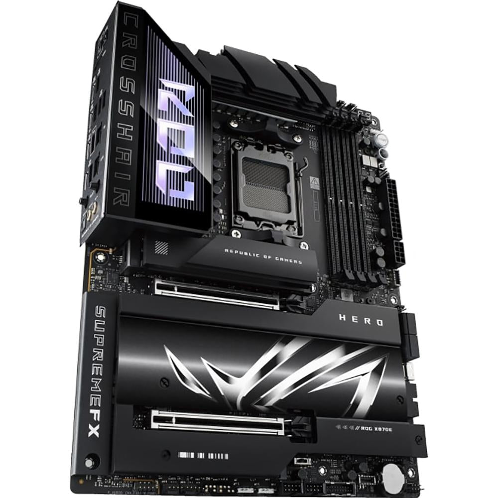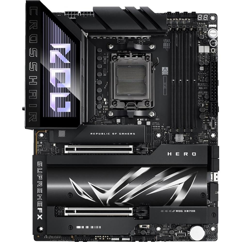 ASUS ROG CROSSHAIR X870E HERO AMD X870E AM5 ATX motherboard, Advanced AI PC ready, 18+2+2 power stages, DDR5, PCIe 5.0, 5x M.2, Wi-Fi 7, USB4 , AI Overclocking, Core Flex, PCIe Slot Q-Release Slim