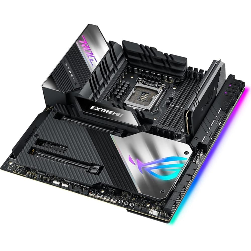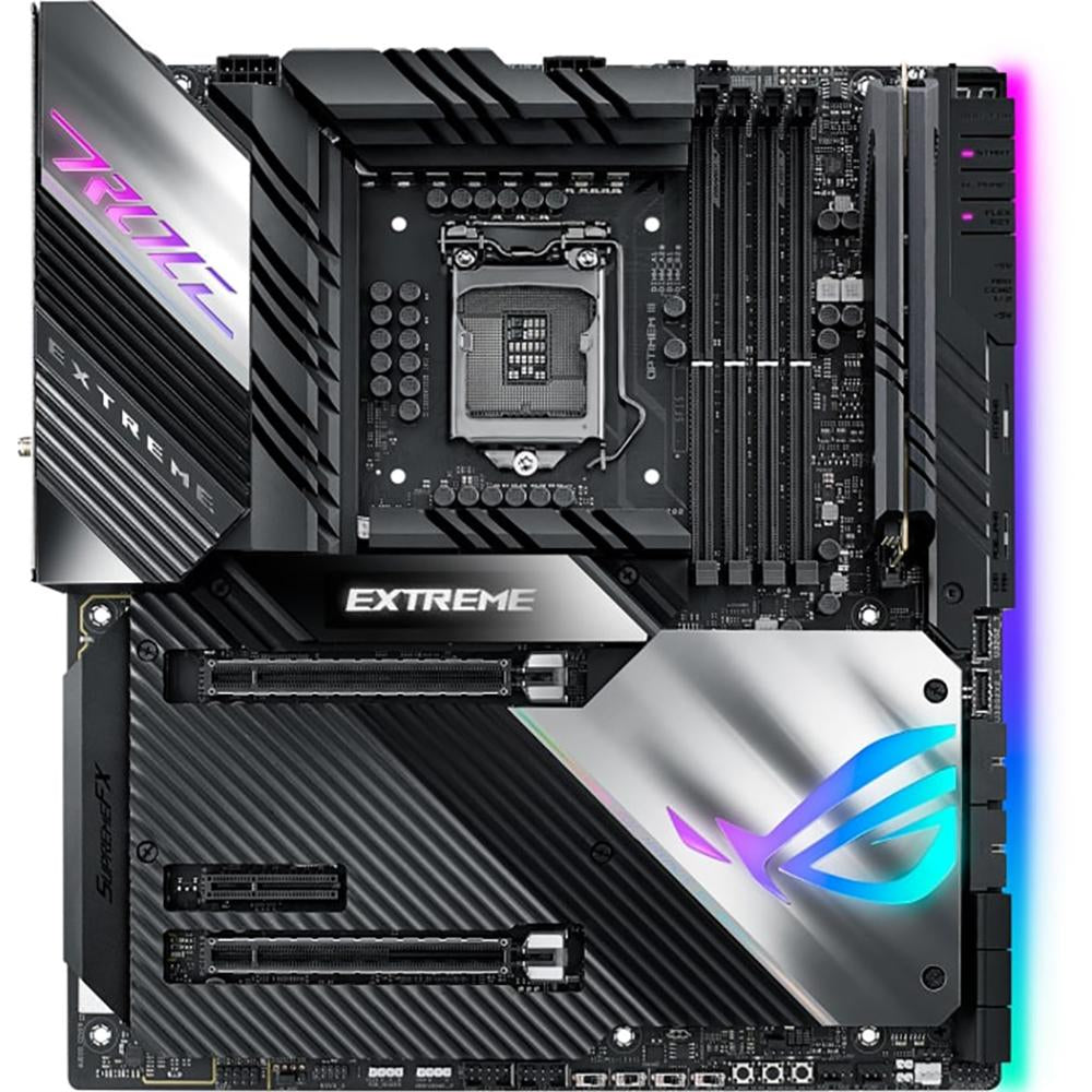 - Asus ROG Maximus XIII Extreme (WiFi 6E) Z590 LGA 1200(Intel 11th/10th Gen) EATX gaming motherboard (PCIe 4.0, 18+2 power stages, 5x M.2, 10 Gb & Intel 2.5Gb LAN,Thunderbolt 4 onboard, 1.77" Livedash OLED and AURA RGB lighting)