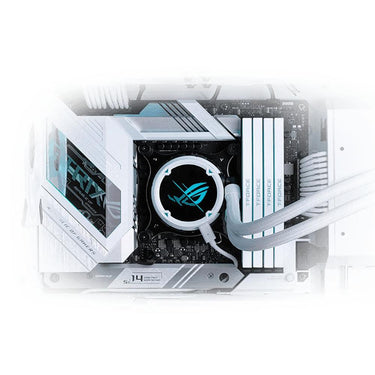ASUS ROG STRIX B650-A GAMING WIFI 6E white and silver scheme motherboard is designed with boosted power delivery and optimized cooling to cope with the demands of powerful Ryzen 7000 series processors. Along with Wi-Fi 6E and PCI Express 5.0 for superfast transfer speeds and storage; ROG STRIX B650-A GAMING WIFI 6E is ready to take the helm of your clean and neat white gaming gear.