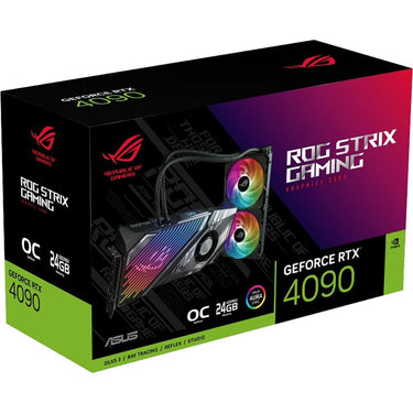 - ASUS ROG Strix LC NVIDIA GeForce RTX 4090 OC Edition Gaming Graphics Card (PCIe 4.0, 24 GB GDDR6X, HDMI 2.1, DisplayPort 1.4a, full-coverage cold plate, 240 mm radiator, 560mm tubing)