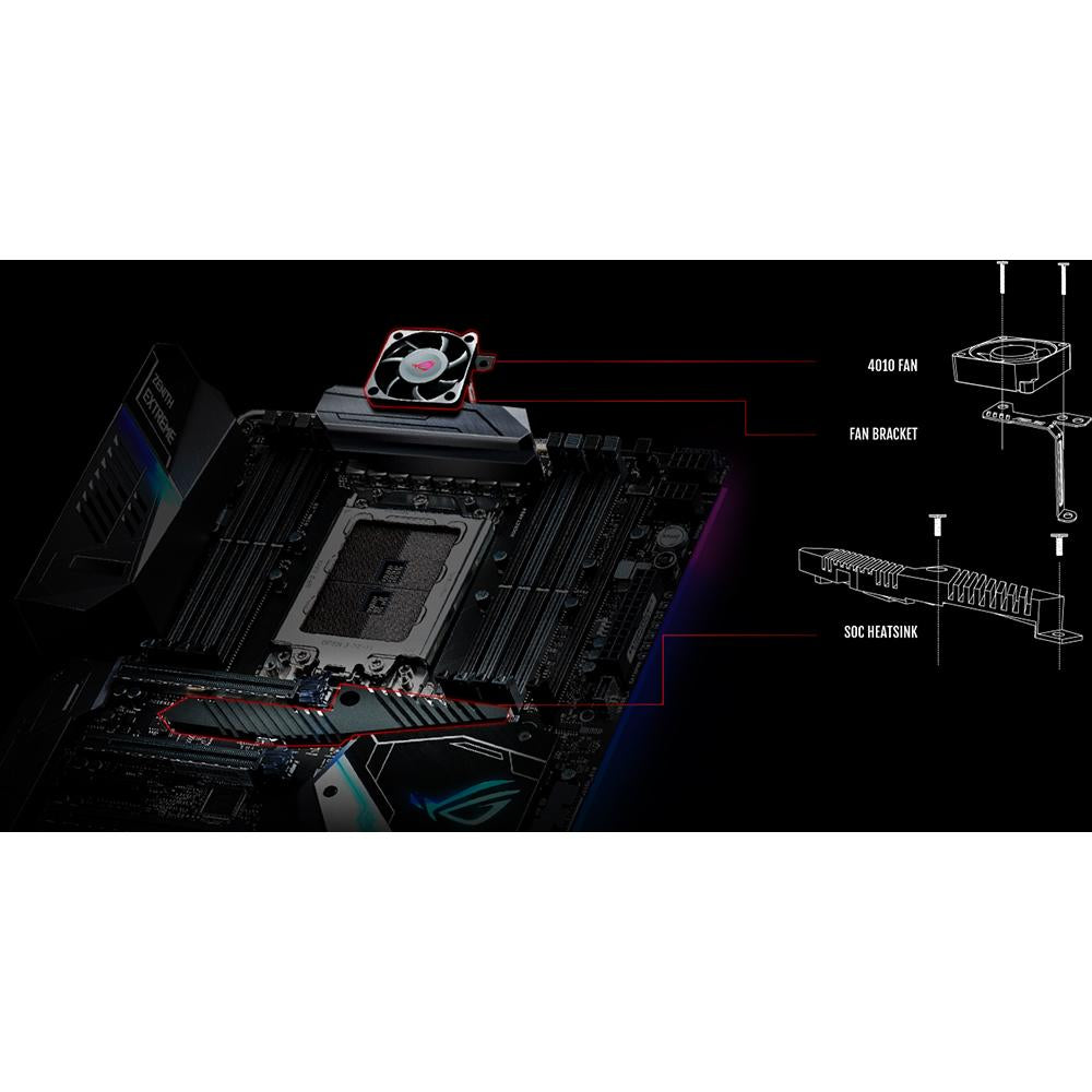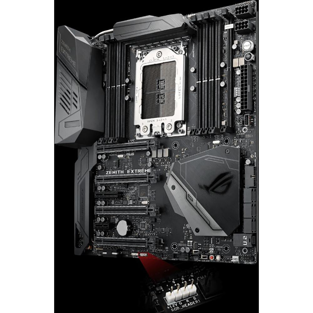Powered by AMD Ryzen Threadripper TR4 processors to maximize connectivity and speed with support for up to 128GB of DDR4 memory, three (3) NVMe M.2 drives, front side U.2 and front panel USB 3.1 Gen2 5-Way Optimization featuring Auto-Tuning and FanXpert 4 provides automatic overclocking profiles for maximum OC performance while AIO and water-cooling headers deliver dynamic system cooling Built for High Performance Networking featuring onboard Gigabit LAN, WiGig 802.11AD Wifi for future wireless VR, and includes the ROG Areion expansion card for connections up to 10Gbps Four patent-pending SafeSlots feature an injection molding process that integrates metal framing for a stronger, firmly anchored PCIe slot built for heavyweight GPUs Unmatched Personalization with LiveDash OLED and ASUS exclusive AURA Sync RGB lighting throughout the Zenith Extreme, including additional RGB headers (+1 addressable) Industry-leading 8-channel HD audio with the ROG exclusive SupremeFX S1220 driven by Japanese capacitors and featuring the ES9018Q2C High Definition DAC