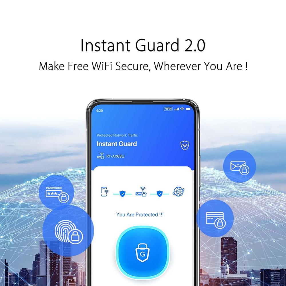 - Commercial-grade Security Anywhere - Protect your home network with AiProtection Pro; powered by Trend Micro. And when away from home; ASUS Instant Guard gives you a one-click sharable secure VPN