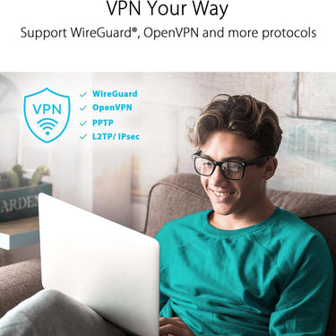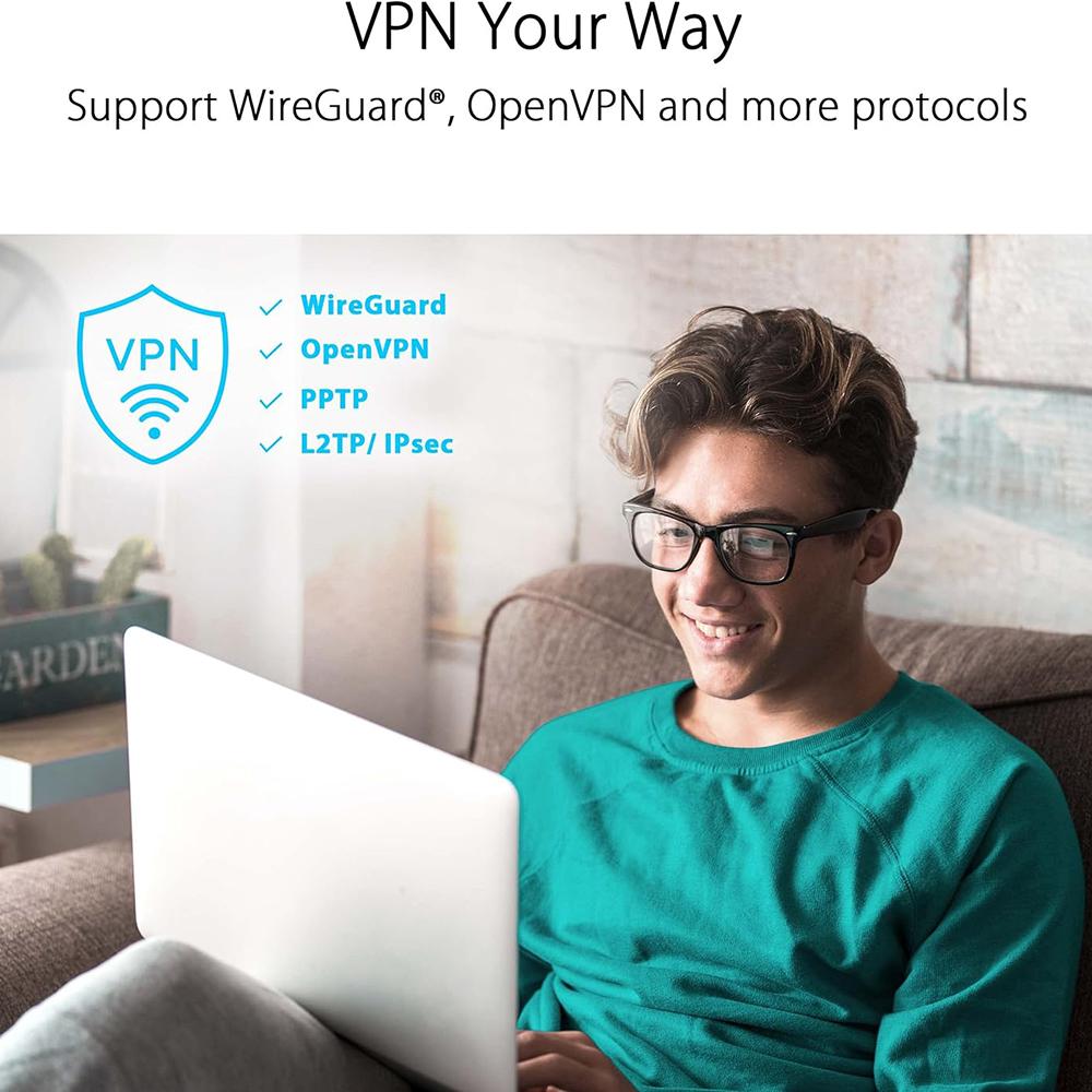 Enjoy secure and quick VPN access for streaming; gaming and other activities with the ASUS RT-AX5400 router. Through both the ASUS Router app and the web interface; you can easily set up and manage your VPN connections; including OpenVPN and WireGuard to meet more of your VPN scenarios.