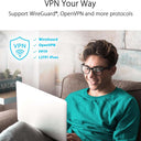 The ASUS RT-AX5400 router allows remote workers to securely access corporate networks without needing to install VPN software on each device. You can create different VPN connection types; including PPTP; L2TP; OpenVPN or WireGuard. With VPN Fusion; you can also assign various devices to different VPN tunnels while simultaneously keeping an ordinary internet connection for regular use.