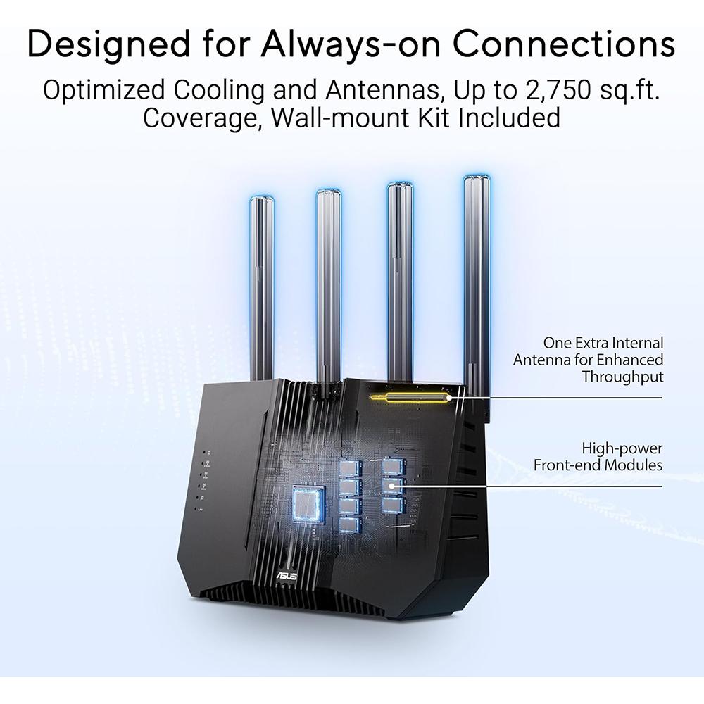 - ASUS BE9700 Tri-band WiFi 7 Router, supports new 320MHz bandwidth & 4096-QAM, Multi-link operation (MLO), AI WAN detection, AiMesh support, subscription-free network security, and comprehensive VPN features, Smart Home Master