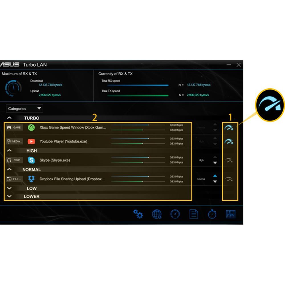 TUF Protection - TUF LANGuard: TUF LANGuard is a military-grade innovation that integrates advanced signal-coupling technology and premium surface-mounted capacitors to improve throughput; protecting the motherboard from lightning strikes and static electricity.
