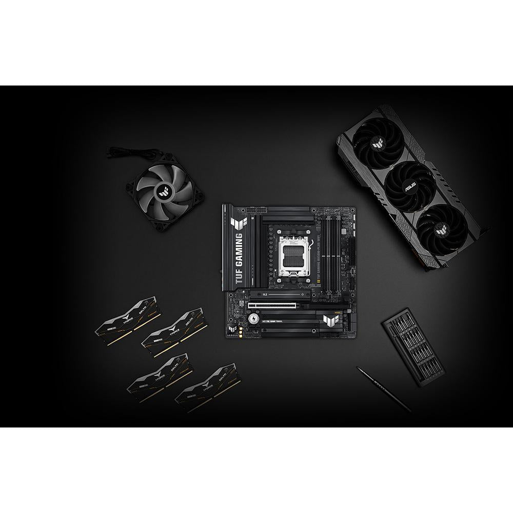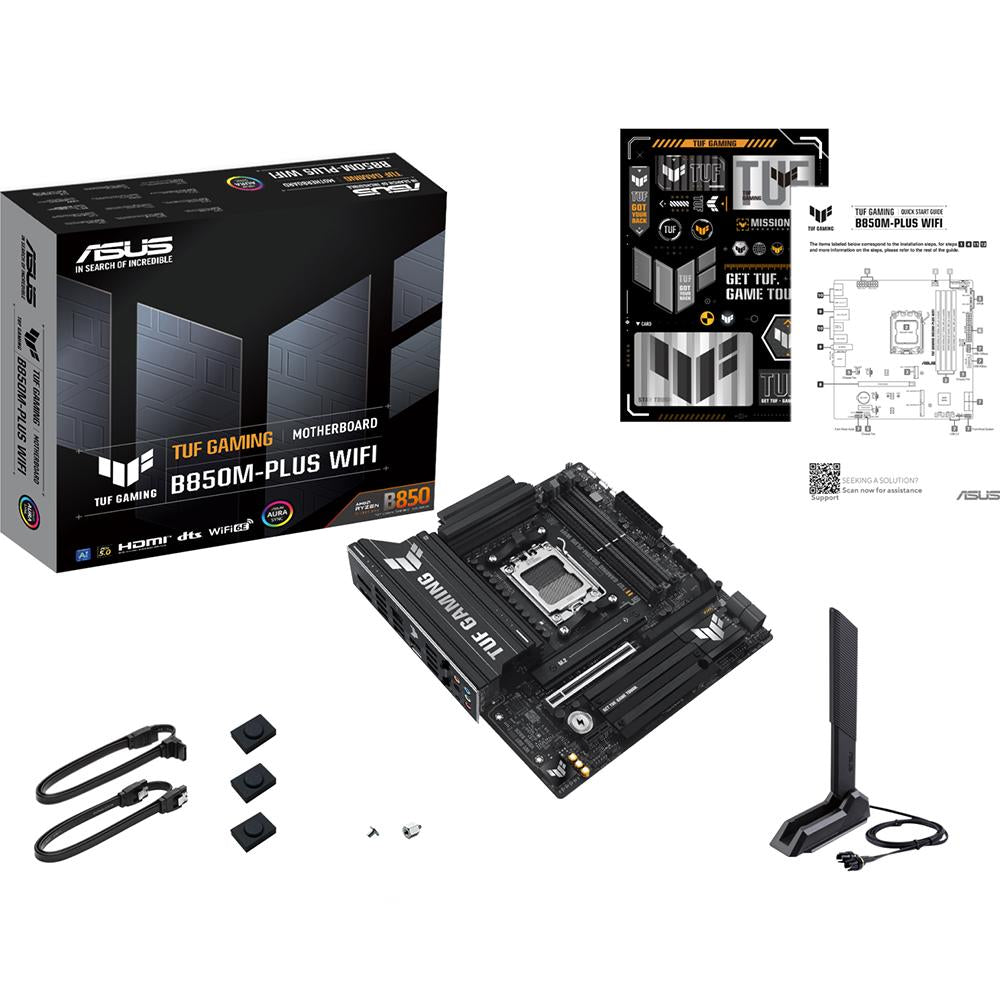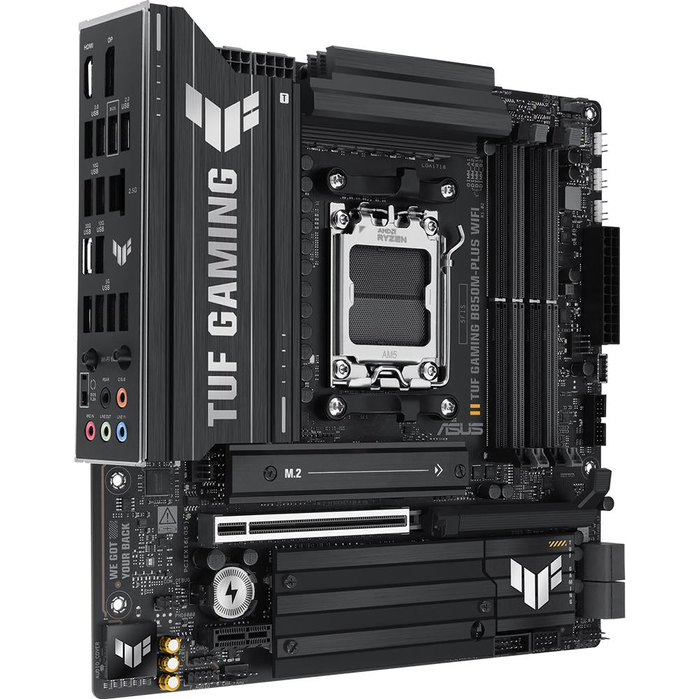 ASUS TUF GAMING B850M-PLUS WIFI AMD AM5 B850 mATX motherboard, 14+2+1 80A DrMOS stages, DDR5, PCIe 5.0, 3x M.2, Wi-Fi 6E, 2.5Gb LAN, DP, HDMI , USB 10Gbps & 20Gbps Type-C , BIOS FlashBack , Aura Sync