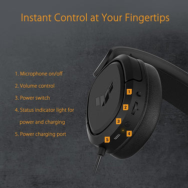 TUF Gaming H1 Wireless headset gives you the most iconic features of ASUS gaming headsets; including airtight chambers and 40 mm ASUS Essence drivers for clearer audio with deeper bass.