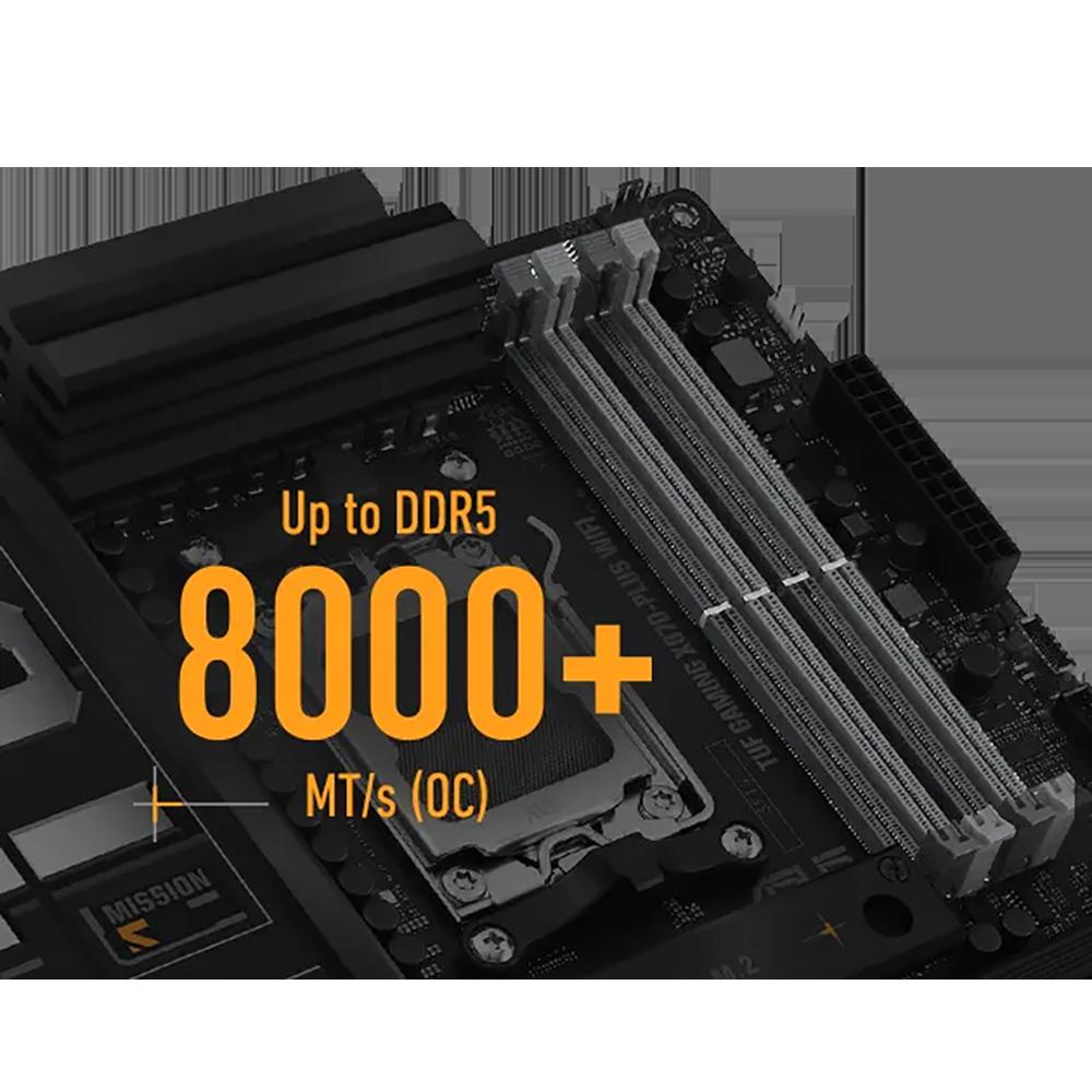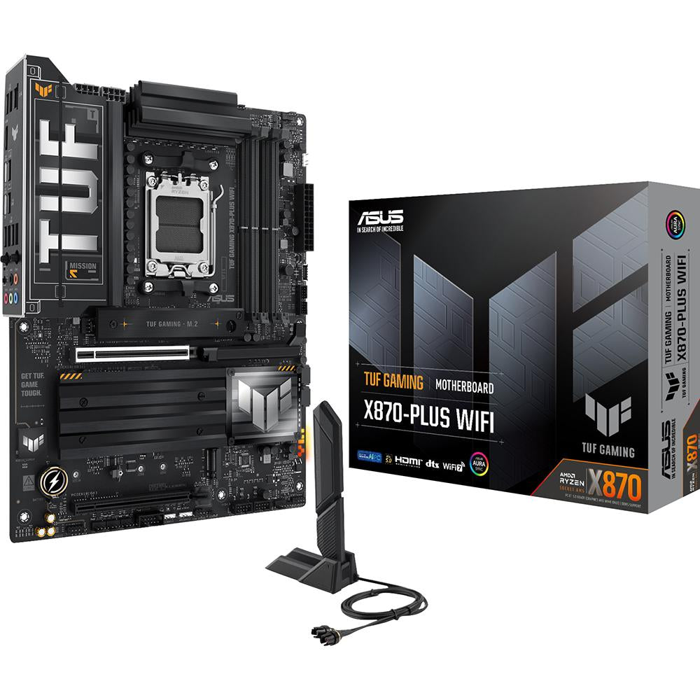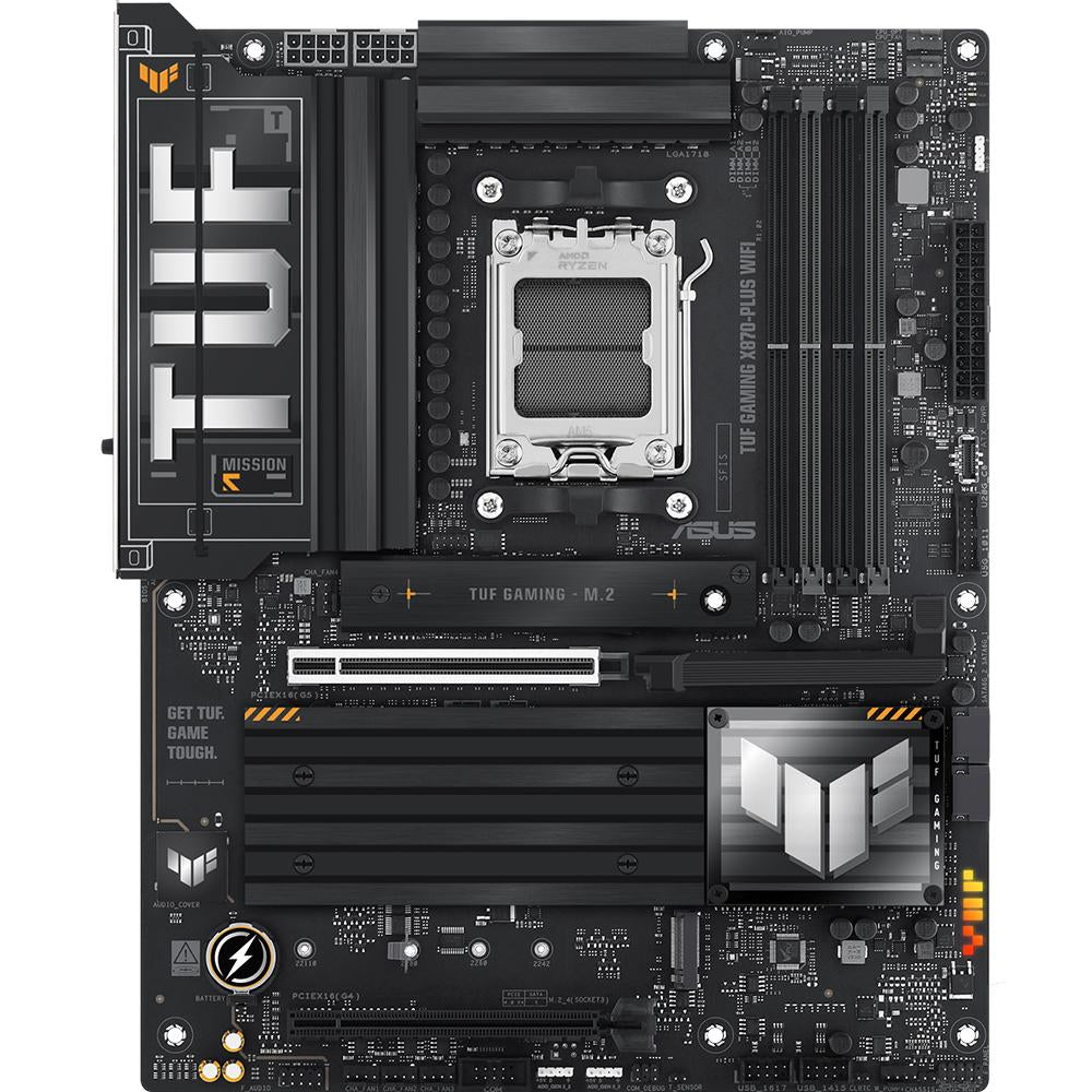 ASUS TUF GAMING X870-PLUS WIFI AMD AM5 X870 ATX motherboard, 16+2+1, 80A SPS power stages, DDR5, PCIe 5.0 Ready, four M.2 slots, Wi-Fi 7, 2.5Gb LAN, HDMI?, USB4 40Gbps, SATA 6 Gbps, USB 20Gbps Type-C