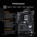 ASUS TUF GAMING Z890-PLUS WIFI takes all the essential elements of the latest Intel® Core™ Ultra Processors (Series 2) processors and combines them with game-ready features and proven durability. Engineered with military-grade components, an upgraded power solution and a comprehensive cooling system, this motherboard goes beyond expectations with rock-solid and stable performance for marathon gaming. TUF GAMING motherboards also undergo rigorous endurance testing to ensure that they can handle conditions where others may fail. This platform delivers the power and connectivity that advanced AI PC applications demand.