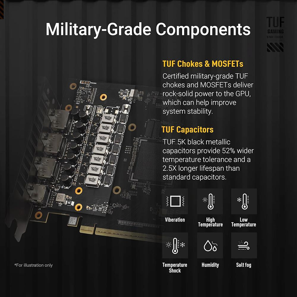 - ASUS TUF Gaming GeForce RTX 5060 Ti 8GB GDDR7 OC Edition Gaming Graphics Card (PCIe 5.0, HDMI/DP 2.1, 3.1-slot, military-grade components, protective PCB coating, axial-tech fans)