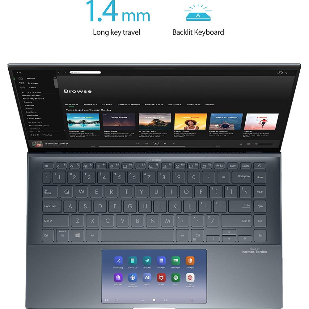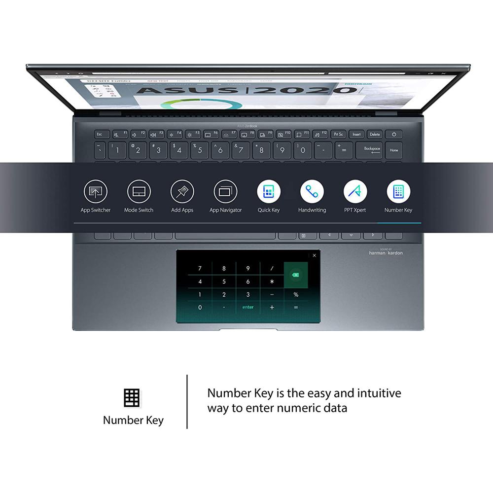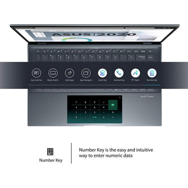 ZenBook 14 features a new edge-to-edge ergonomic keyboard design that increases the size of keyboard, ASUS NumberPad 2.0.