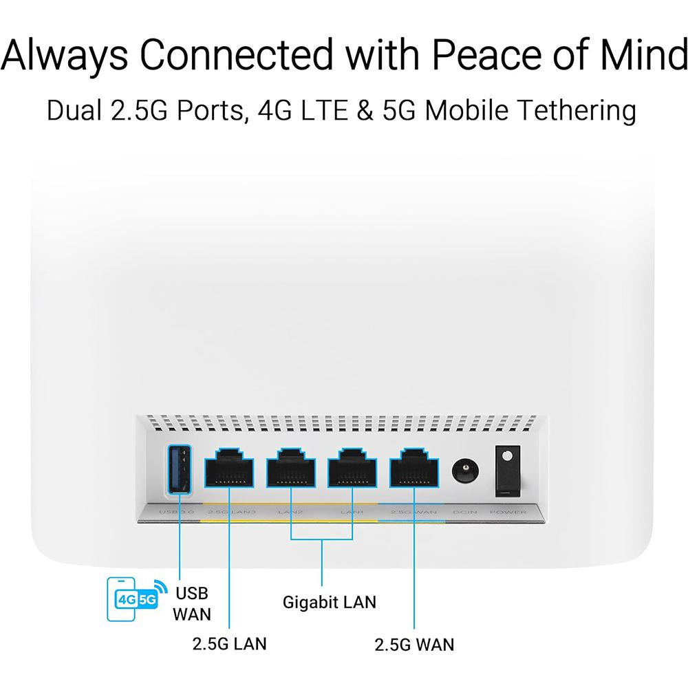 - ASUS ZenWiFi BT8 Tri-band WiFi 7 Mesh, 14 Gbps, 3000 sq.ft. (1pk), Dual 2.5G Ports, Security and Parental Controls Included, Smart Home Master SSIDs, 4G & 5G Mobile Tethering
