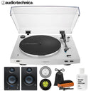 Audio-Technica AT-LP3XBT-WH Wireless Belt-drive Turntable + Studio Monitors +Record Care Bundle