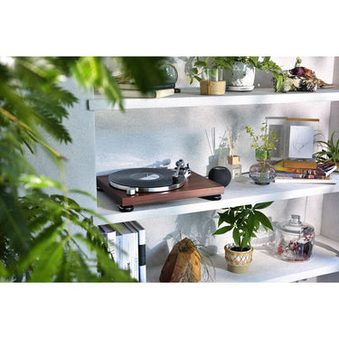 The 30mm thick MDF plinth, with rosewood-finished wood veneer dampens low-frequency acoustic feedback and minimizes distortion disturbance