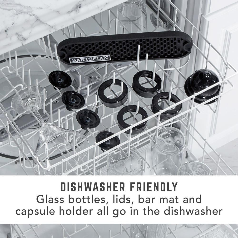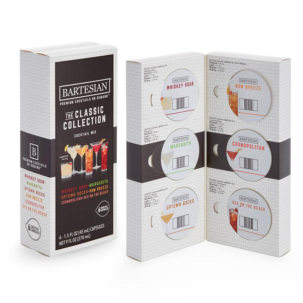 Bartesian allows everyone to be a master bartender. Simply insert a capsule, select the strength, and enjoy a perfectly crafted cocktail in seconds. Four reservoirs contain each of your favorite spirits (vodka, gin, rum, tequila, or whiskey). When a capsule is inserted the system draws the spirit from the appropriate reservoir. The strength of each drink is adjustable from mocktail to double, so there's a cocktail for every palate. Now you don't have to be an expert mixologist to enjoy an excellent cocktail.