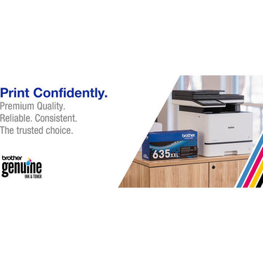 Print confidently with Brother Genuine TN635XXLBK Super High Yield Black Toner Cartridge. Expertly engineered, Brother Genuine is the only toner brand recommended for Brother Business Color Laser Printers. With the reassurance of dependable compatibility, this cartridge produces sharp, precise results and delivers yields up to 7,500 pages. A must-have for consistently impressive quality, Brother Genuine Toner is the reliable choice for producing professional documents and personal paperwork with ease. When it's time to replace your printer's toner cartridge, the Brother Genuine brand provides a worry-free experience. For best results, use with Brother single-function and all-in-one business color laser printers: HL-L8430CDW, HL-L8430CDWT, HL-L8570CDW, MFC-L8930CDW, MFC-L8970CDW, and MFC-EX575.