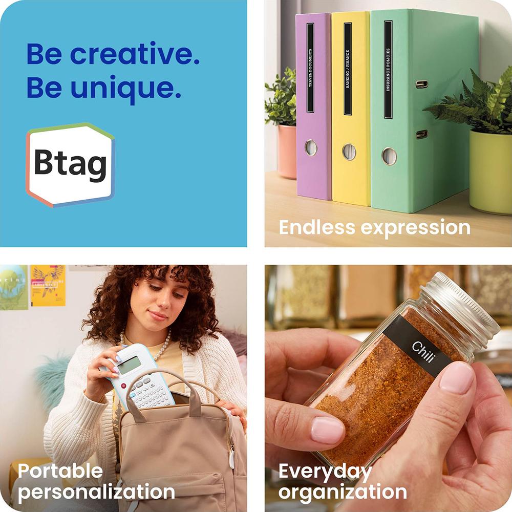 The Brother Genuine Btag 3-Pack Label Tapes (BTAG3M01) are perfect for organizing your home, office, kitchen, or craft space. Designed for use with Brother P-touch label makers (PT-N10, PT-N20, PT-N25BT), this pack includes three non-laminated tapes in a variety of high-contrast color combinations: White on Clear, Black on White, and White on Black. Each tape measures 12mm wide and 4 meters long, with the ability to print up to two lines of text. These durable, easy-peel labels are water-resistant, fade-resistant, and safe for use in the dishwasher, freezer, and microwave.