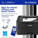 The Brother HL-L2460DW is a compact, high-speed monochrome laser printer designed for home offices and small business environments. With fast print speeds of up to 36 pages per minute, automatic two-sided printing, and flexible connectivity options including dual-band Wi-Fi, Ethernet, and USB, this printer helps improve productivity while saving space. It features a 250-sheet paper tray and manual feed slot for specialty media, plus mobile and cloud printing compatibility via AirPrint, Mopria, and Brother Mobile Connect. The HL-L2460DW is also eligible for Brother’s Refresh EZ Print Subscription Service, ensuring you never run out of toner when you need it most.
