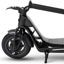 For those purposes, this electric scooter features unique lighting functions. Its dual-turn signals are located on the ergonomic handle grips, as well as above the rear mudguard