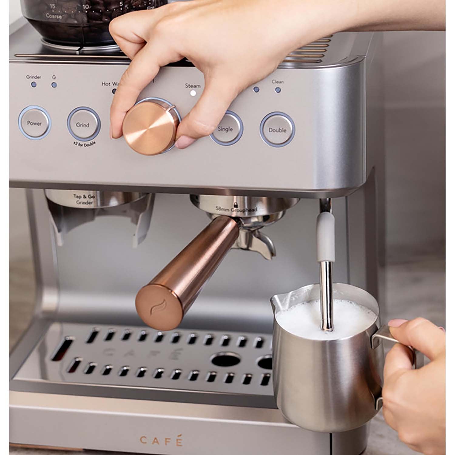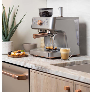 Built to showcase individual style, this modern espresso machine is adorned with signature copper accents that add sophistication to any countertop.