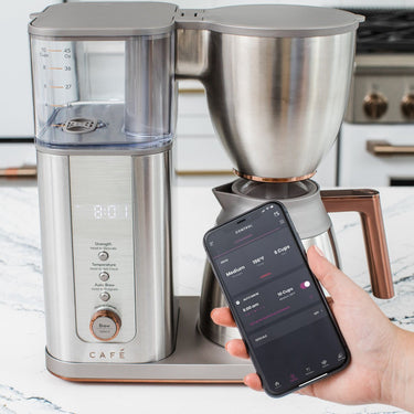 Equip your kitchen with the only SCA Certified coffee maker that works with the SmartHQ app, Alexa and Google, and features enhanced, Voice-to-Brew controls