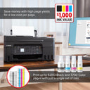 MegaTank savings – Refillable ink system yields up to 6,000 B/W / 7,700 color pages per set; save up to $1,000 on ink.