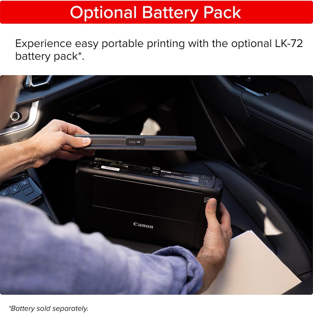 Print without an AC outlet thanks to the optional LK-72 battery pack(sold seperately). It can also be charged via USB connection, so it’s even more reassuring.