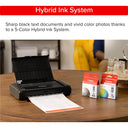 Print documents and photos up to 8.5” x 11” that showcase sharp black text and vibrant details with rich color thanks to a 5-Color Hybrid Ink System, including square and borderless prints.
