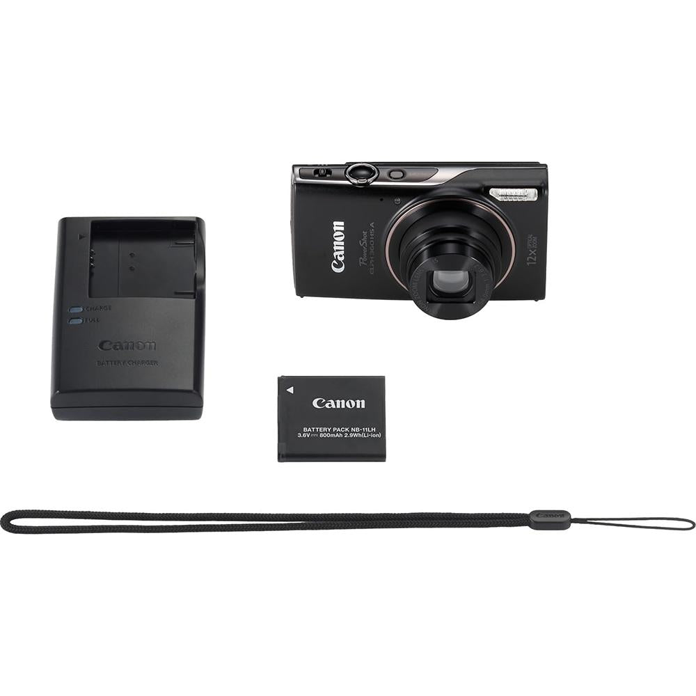 Canon PowerShot ELPH 360 HS A (Black), 20.2MP CMOS, 12x Zoom, OIS, 1080p Full HD