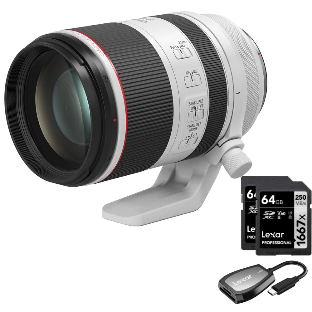 Canon RF 70-200mm F2.8 L IS USM Telephoto Zoom Lens, White + 64GB Dual Bundle