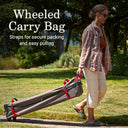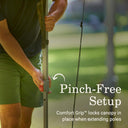 Comfort Grip features easy-to-use buttons for locking the poles in place when setting up or taking down.
