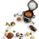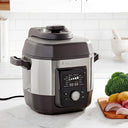 Cuisinart® picks up the pressure with this powerful new High-Pressure Multicooker. Cooking under pressure can finish a meal 70% faster, and with its max 15psi, this multicooker can do it even faster! But versatility is the big story. This is a top-of-line multicooker, with 12 pre-programmed settings for everything from meat to risotto to sautéed veggies. It’s truly a pot that does it all. And it makes doing it all so easy, with intuitive digital controls and a large easy-to-read LCD. Uniquely shaped and finished, it’s destined to take center stage on any kitchen counter.