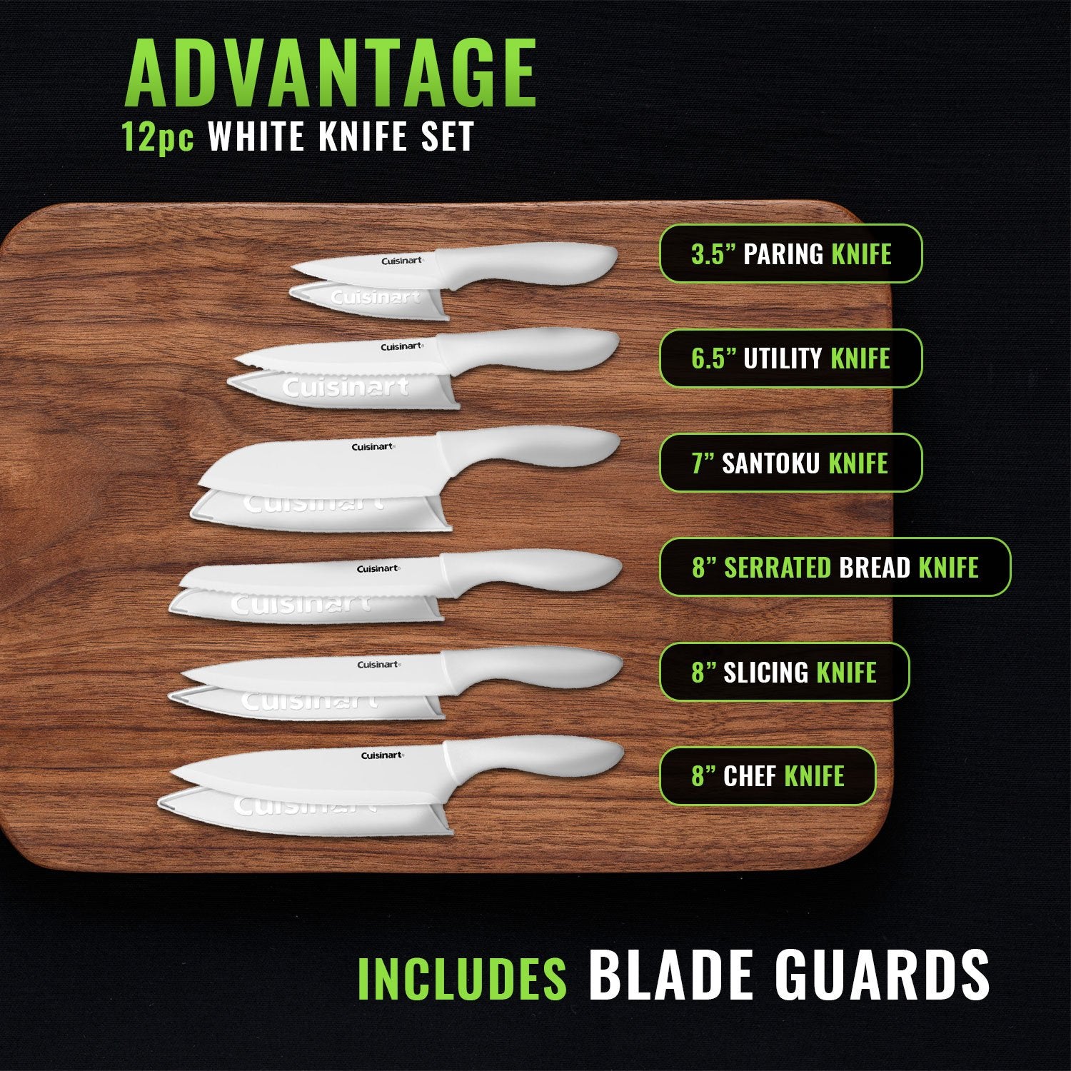 Cuisinart Advantage 12-Piece White Knife Set with Blade Guards C55-12PCWH