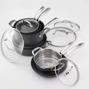 Durable tempered-glass lids that allow for easy monitoring of the cooking process while sealing in flavors.