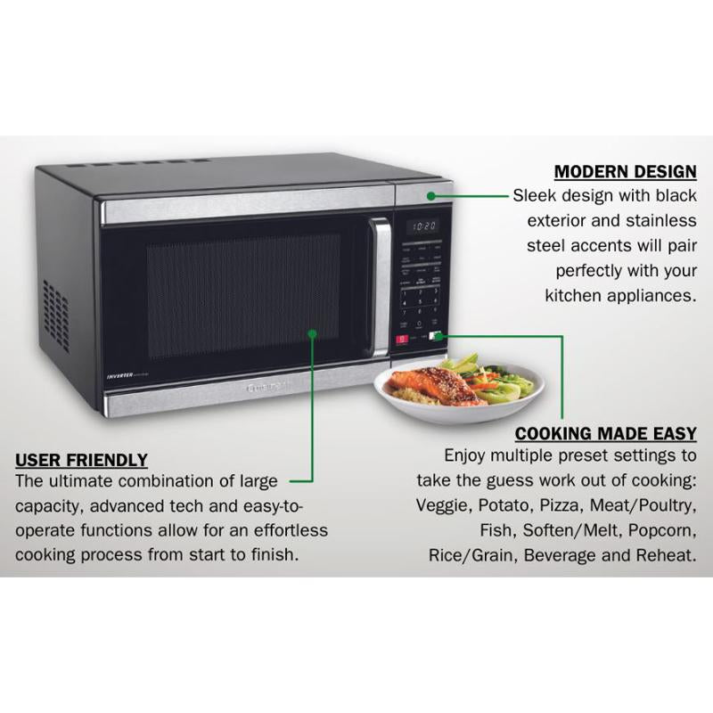 With advanced technology this microwave offers quicker, more even cooking, less noise, and lower energy consumption.