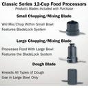 - Large and Small Stainless Steel Chopping/Mixing Blades with BladeLock System