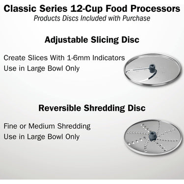 - Stainless Steel Adjustable Slicing Disc (1mm to 6mm) and Stainless Steel Reversible Shredding Disc (fine/medium)