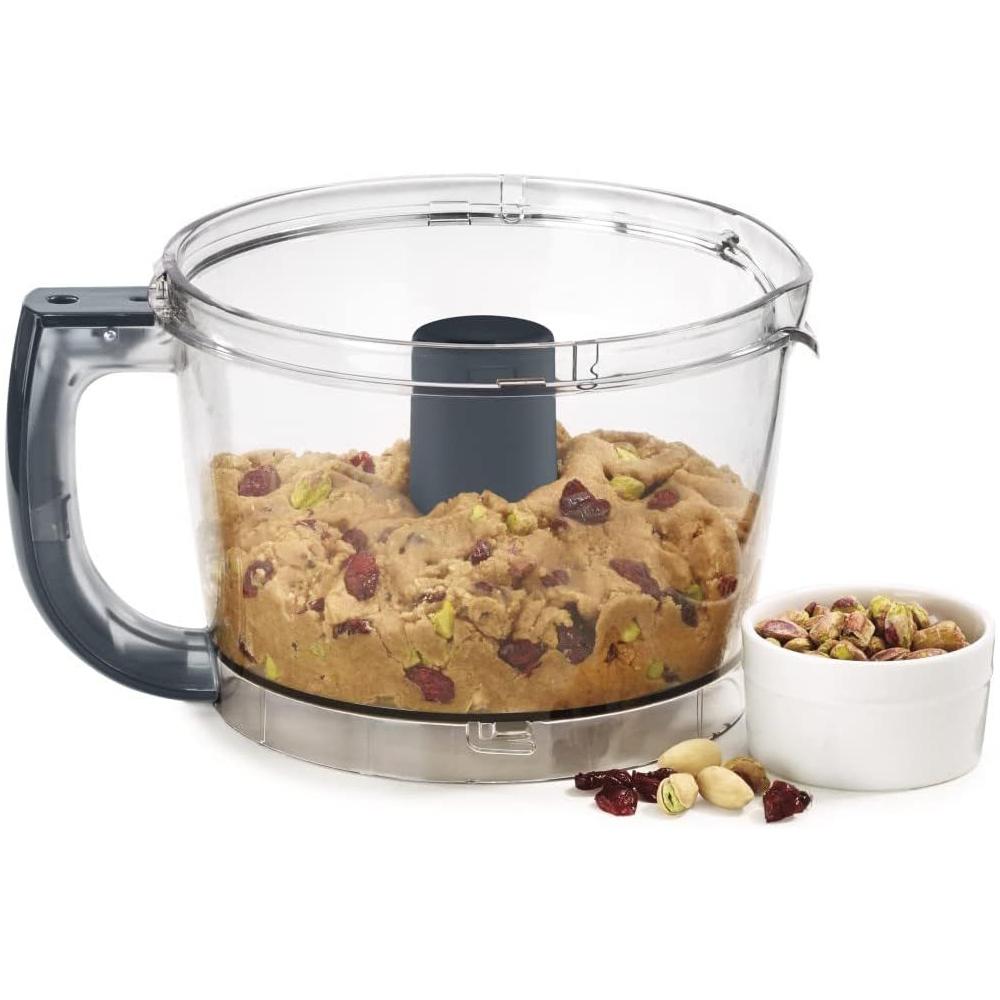The Cuisinart Elite 2.0 12-Cup food processor has a 1000-watt peak power motor with large bowl and 4-cup small bowl with pour spouts and measurement markings