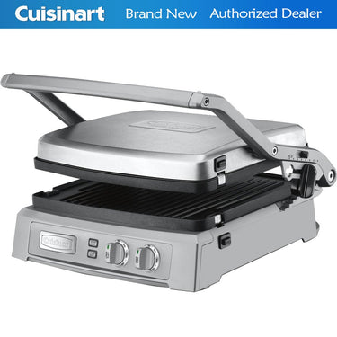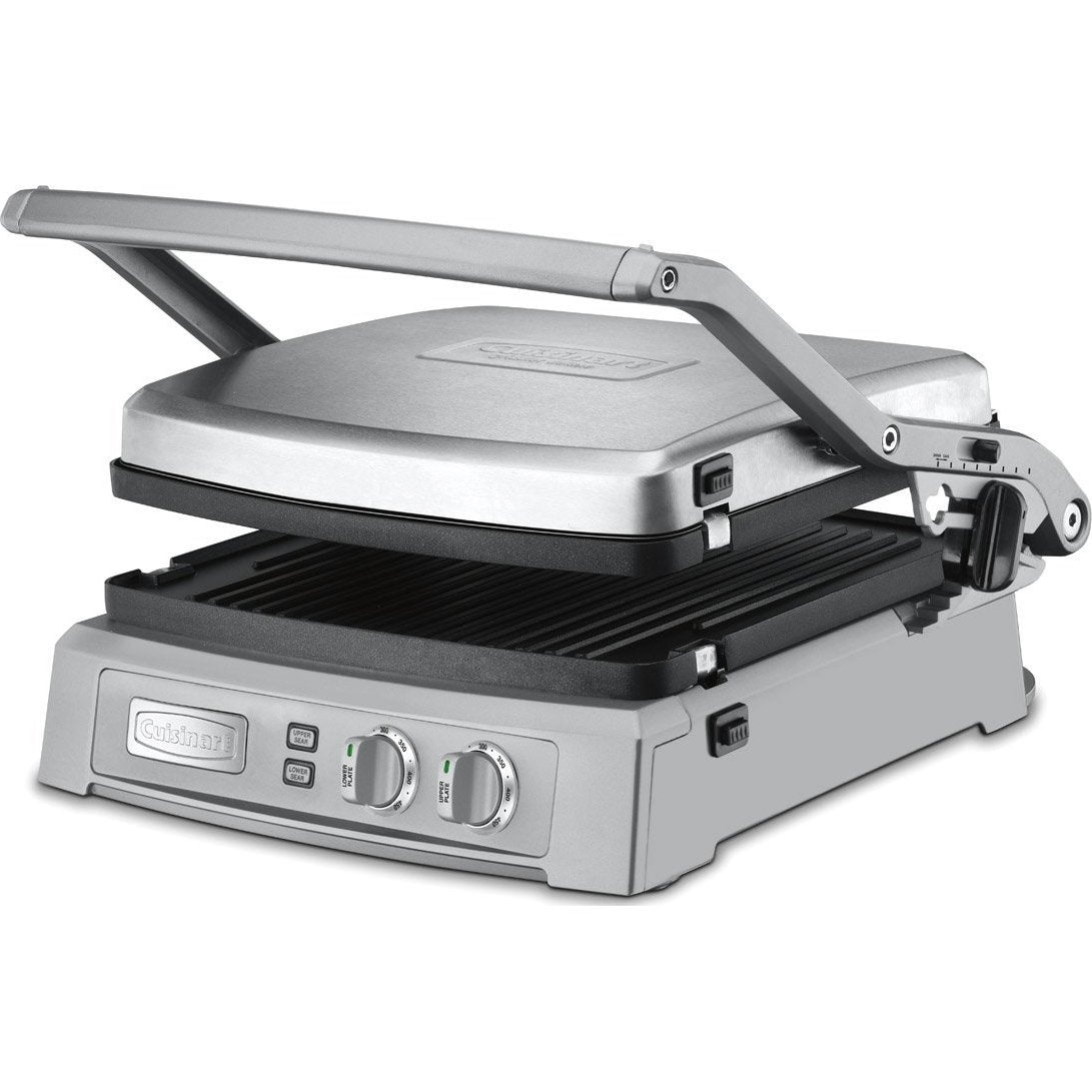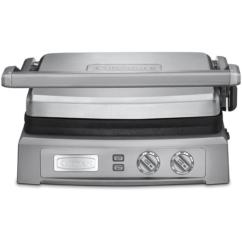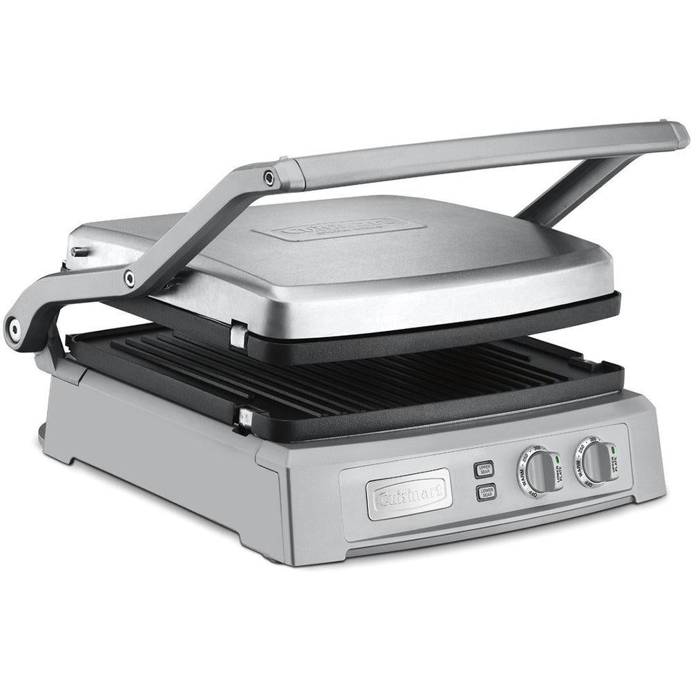 The Cuisinart Griddler Deluxe takes grilling to new heights! It offers six enticing cooking options. The reversible grill and griddle plates, combined with dual-zone temperature control, give home chefs complete control. This grill is perfect for making pancakes and eggs for breakfast, panini and open-faced sandwiches for lunch, and burgers or fajitas for dinner. The extra-large grilling surface is ideal for entertaining a crowd or making family meals. The new SearBlast feature locks in the flavor of steaks. With dishwasher-safe accessories, an elegant look, and 1800 watts of power, deluxe is an understatement.