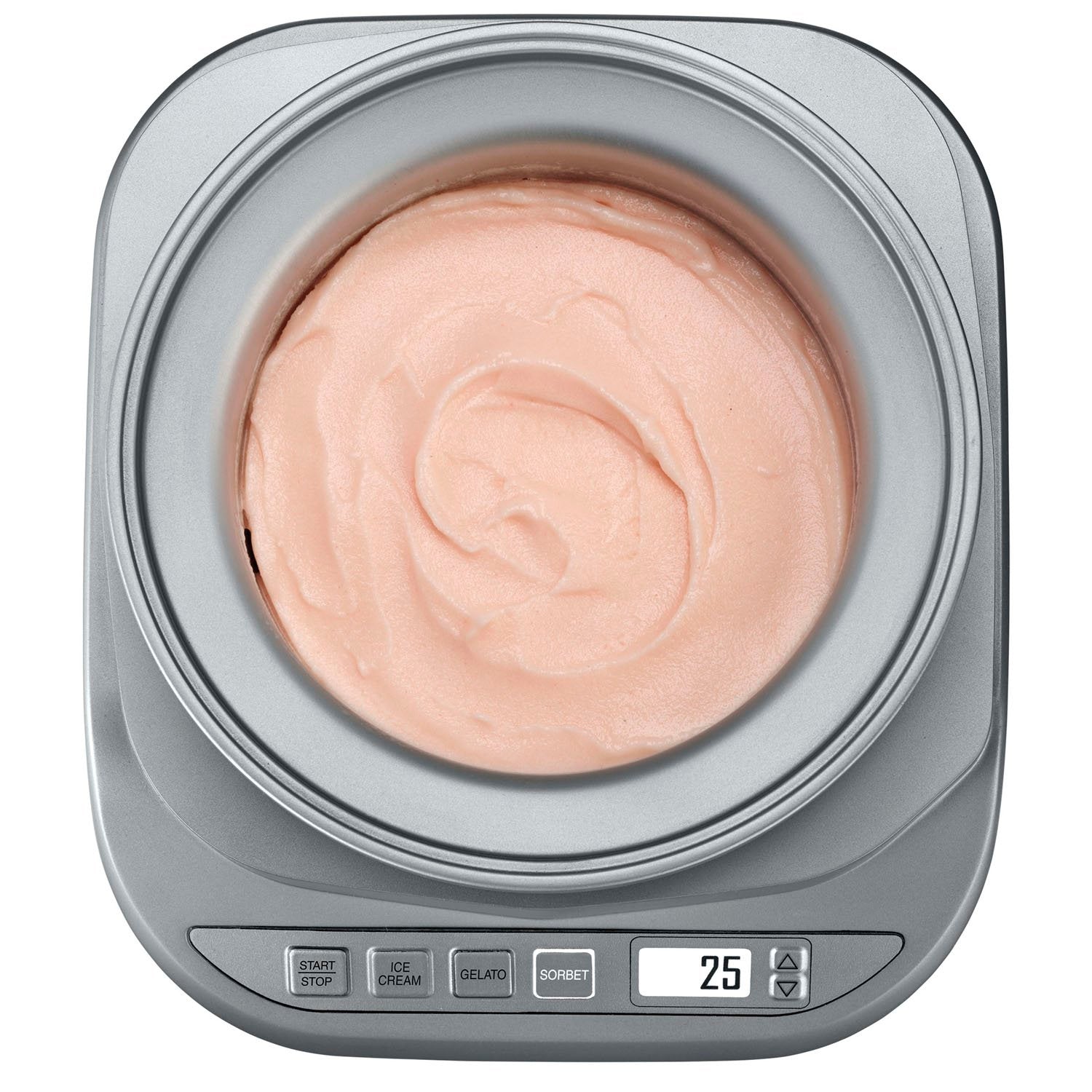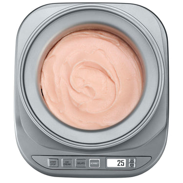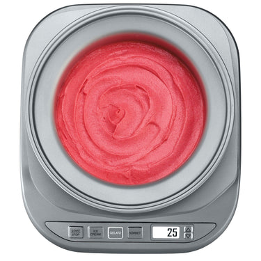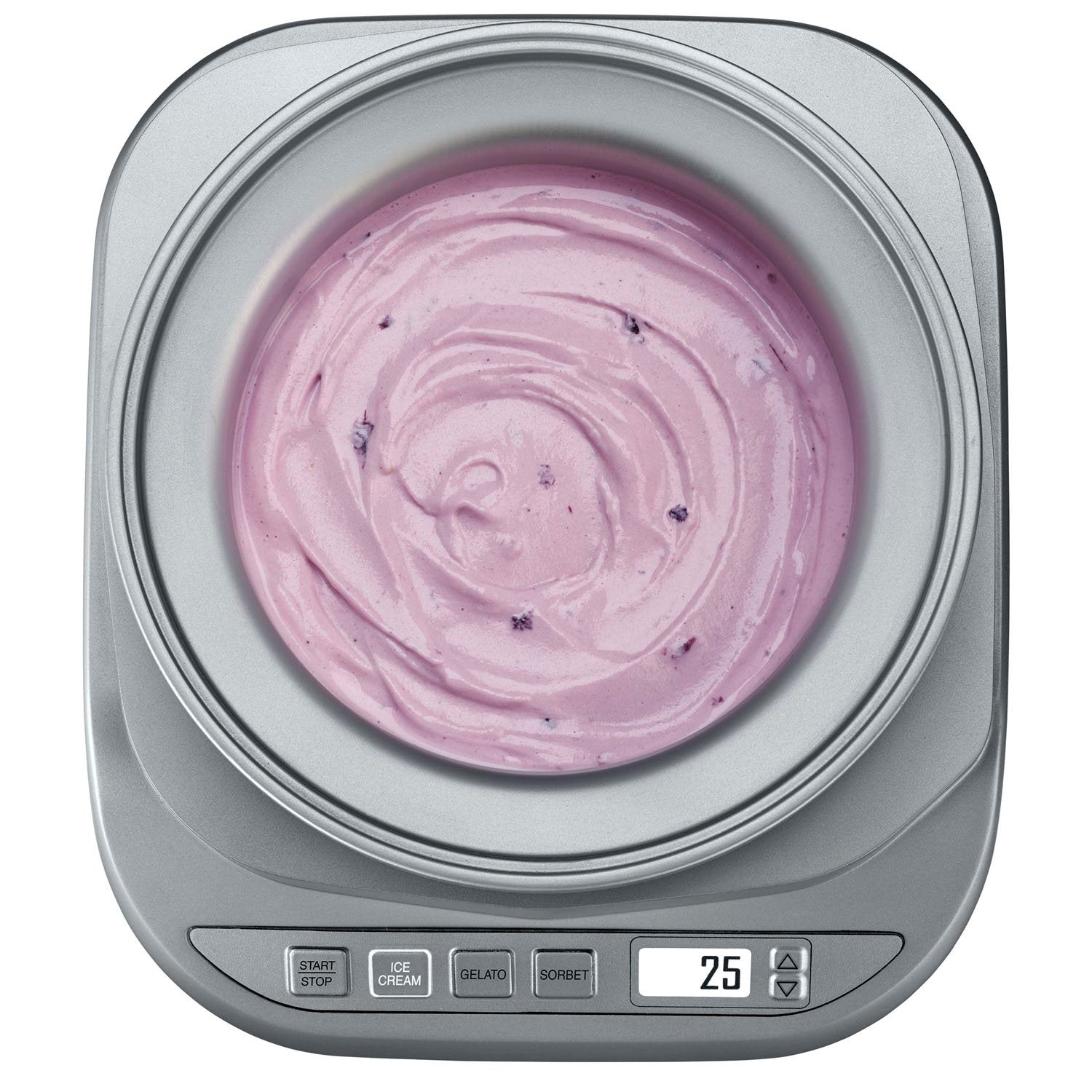 At the touch of one button, you can create two quarts of delicious frozen treats with the Cool Creations Ice Cream Maker in just 20 minutes. Making homemade ice cream, gelato, frozen yogurt, and sorbet of any type in any flavor couldn't be easier with one-button operation for ice cream, gelato, and sorbet, convenient digital LCD time programming, and auto shutoff. The unique paddle makes fast work of processing. The sleek brushed metal housing makes it look as good as the treats it creates for your family and friends.