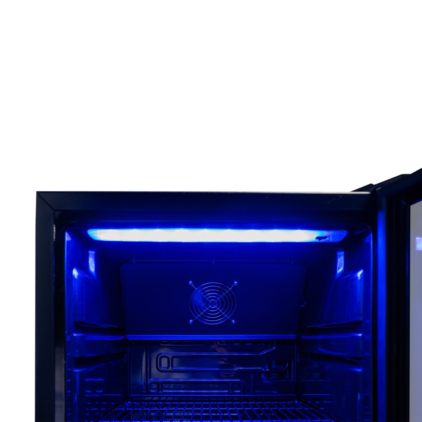 •Showcase lighting illuminates the cabinet with Energy efficient blue LEDs