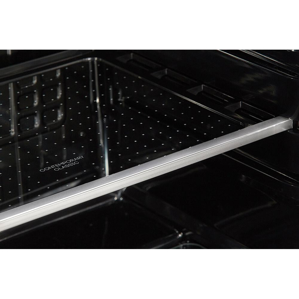 Drawing inspiration from mid century styling and simplicity; Danby's patented Contemporary Classic collection of compact refrigerators reimagine retro for the modern consumer. Featuring Danby's exclusive retro inspired curved door design; metallic door and chassis finish; door lock; rubber grip ergonomic chrome handle and stylized chrome worktop; its exterior features are only outmatched by its signature black interior. Boasting 4.4 cubic feet (124 liters) of storage and cooling space; it features two and a half chrome trimmed tempered glass shelves for maximum storage versatility and a vegetable crisper with glass top. There's more than enough room for larger bottles and the spacious unit helps keep electricity bills in check with its Energy Star rating and state of the art mechanical thermostat. Maintenance and cleaning are as simple as can be with the automatic defrost system. It also includes an efficient CanStor beverage dispenser and reliable interior white LED light. This model is built for convenience as the reversible door hinge allows you to adjust it for either left or right handed opening.