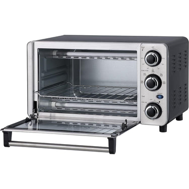 Three easy to use mechanical knobs control time, function, and temperature. All your daily cooking needs at your fingertips.