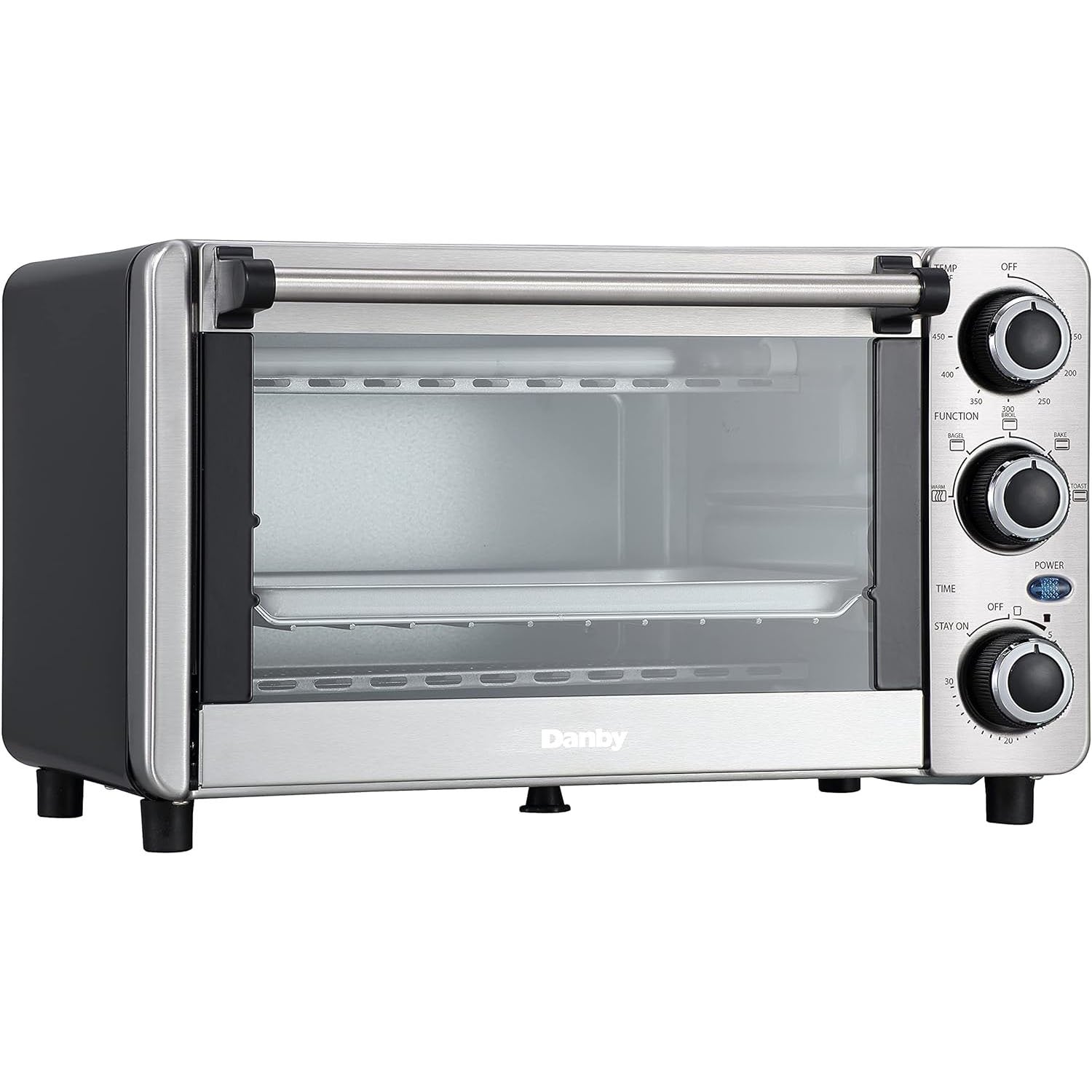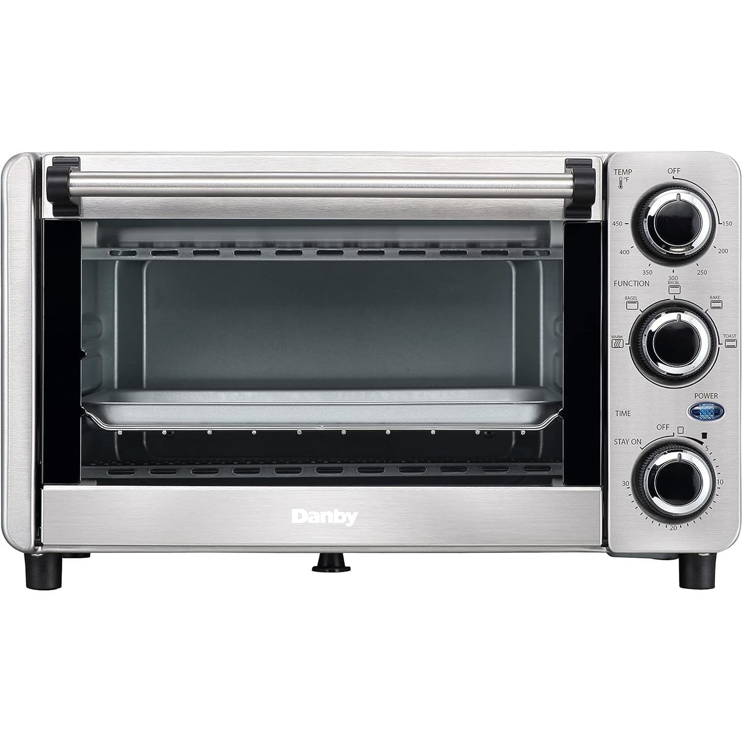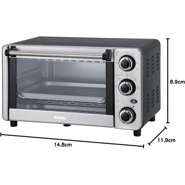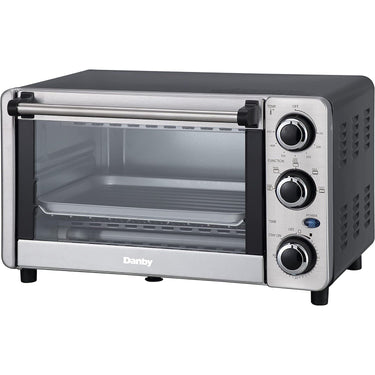 With multiple cooking options, this stainless-steel Toaster Oven will be a compact and versatile addition to your countertop! Choose from 4 pre-programmed cooking functions – toast, bake, broil, and keep warm – all in the space of a toaster. Equipped with 1,100 watts, a generous capacity + a temperature range of 150-450ºF, this oven can toast 4 slices of bread, cook a 9” pizza or broil chicken pieces. We’ve included a wire rack, baking pan and crumb tray, so you’re ready to start cooking. Entertaining? No problem. With this stylish and easy-to-use Toaster Oven from Danby, you’ve just gained additional cooking capacity.