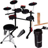 - Mesh drum heads for quiet and responsive playing