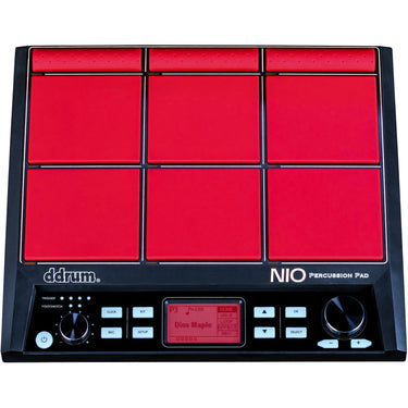 ddrum introduces the NIO Electronic Percussion Pad with the capabilities of a fully functioning electronic drum kit. With a broad surface of responsive pads, endless percussive options, and ample connectivity, the NIO is the ultimate addition to your acoustic or electronic kits. Use it for at-home practice, live performances and even studio sessions. With the NIO Electronic Percussion Pad, you have endless options to level-up your percussive creativity. The NIO is designed with nine isolated rubber pads and comes pre-loaded with 30 preset kits, including five ddrum series kits; 20 user kits; and hundreds of built in sounds. Additionally, you have the option to utilize 512 MB of storage for loading your own sample drum kits, sounds, or loops via USB (Type-B) output.