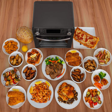 - Rapid hot air circulation ensures food is cooked evenly